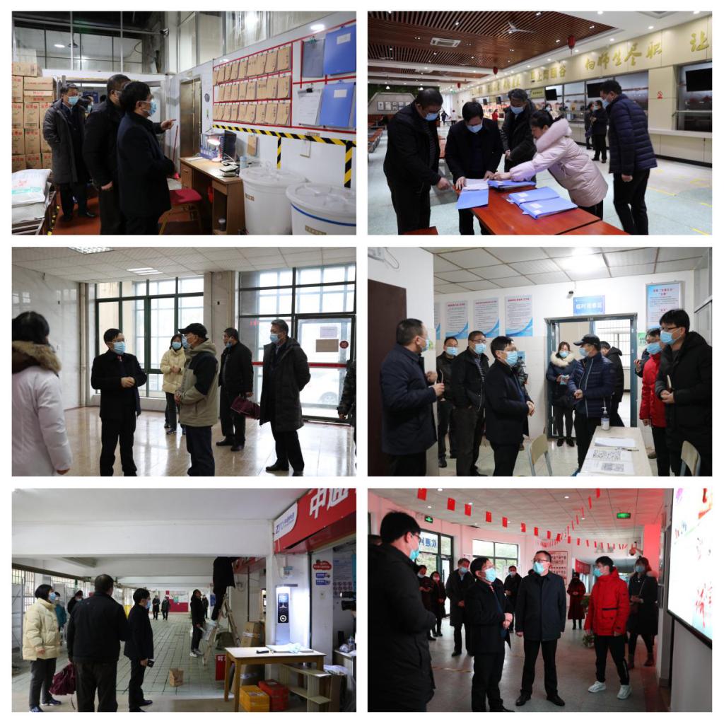 2022年春季学期开学在即,2月18日上午,校长汪胜前带队检查校园疫情防控措施落实和春季学期开学准备工作,副校长李明、周敏丹一同检查。