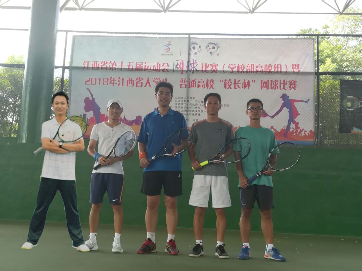 7月11日-17日,由江西省人民政府主办,江西省教育厅、江西省体育局、景德镇市人民政府、江西旅游商贸职业学院承办的2018年江西省大学生、普通高校“校长杯”网球比赛在江西旅游商贸学院举行,全省39所高等院校的601名运动员参加比赛。赛前,我校网球队员由教练员张鑫老师带队进行了为期数周的高强度集训,从技战术演练到力量训练,在酷暑中积极备战。比赛中,我校队员们奋勇拼搏,获得本科甲组男子团体第四名、男子双打第三名和第四名、单打第七名的好成绩,展现了良好的团队精神和积极进取的精神面貌。张颖涛同学被组委会评为“优秀运动员”,张鑫老师荣获“优秀教练员”荣誉称号。(文/图 体育教学部)