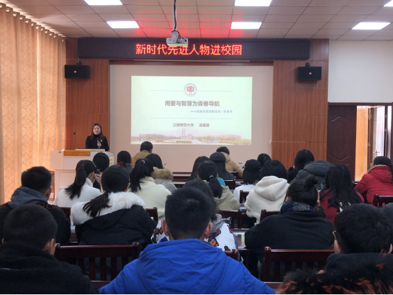 为发挥先进人物的榜样示范作用,12月22日下午,体育教学部党总支开展新时代先进人物进校园活动,江西师范大学商学院辅导员汤美丽作题为《用爱与智慧为青春导航》的报告,体育教学部教师和经济贸易学院学生代表40余人参加此次活动。