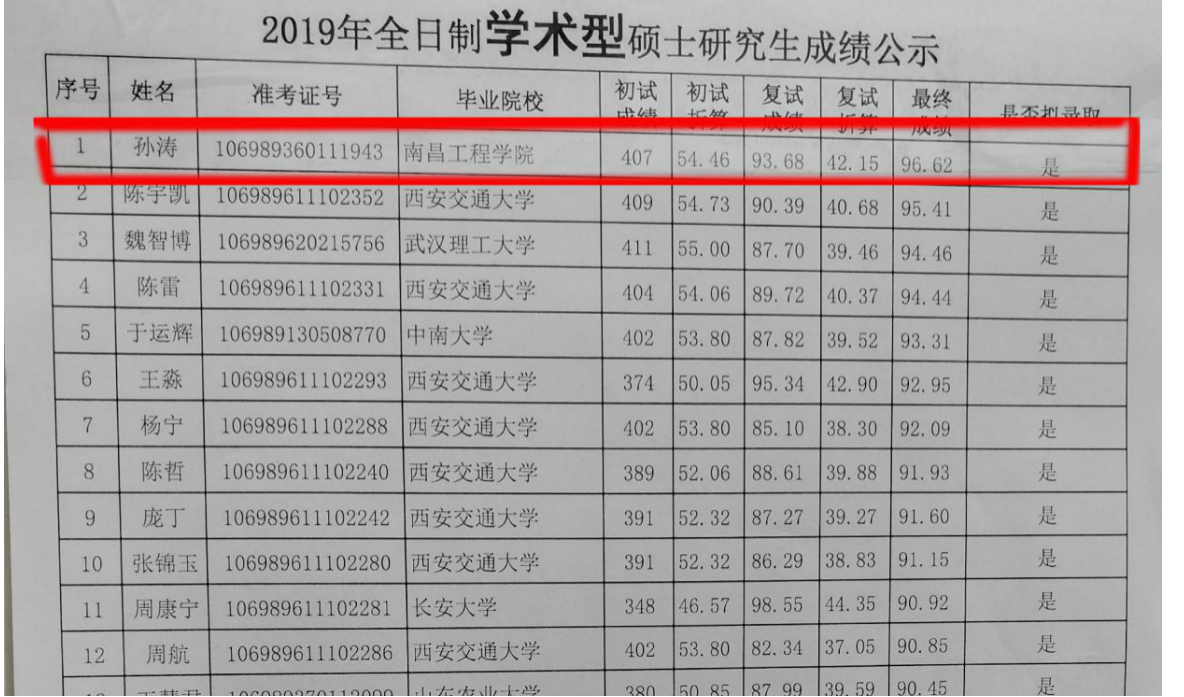 举个例子,2015级机械设计制造及其自动化专业孙涛同学,考研报考的是西安交通大学,初试分数为407,在所有报考学子并不是最高。但得益于他在校期间获过很多国家级、省级科技创新奖励,复试时直接逆袭成功,超过了众多西安交大本校生、其他985、211高校学生,以综合成绩第一名录取学术型硕士研究生。