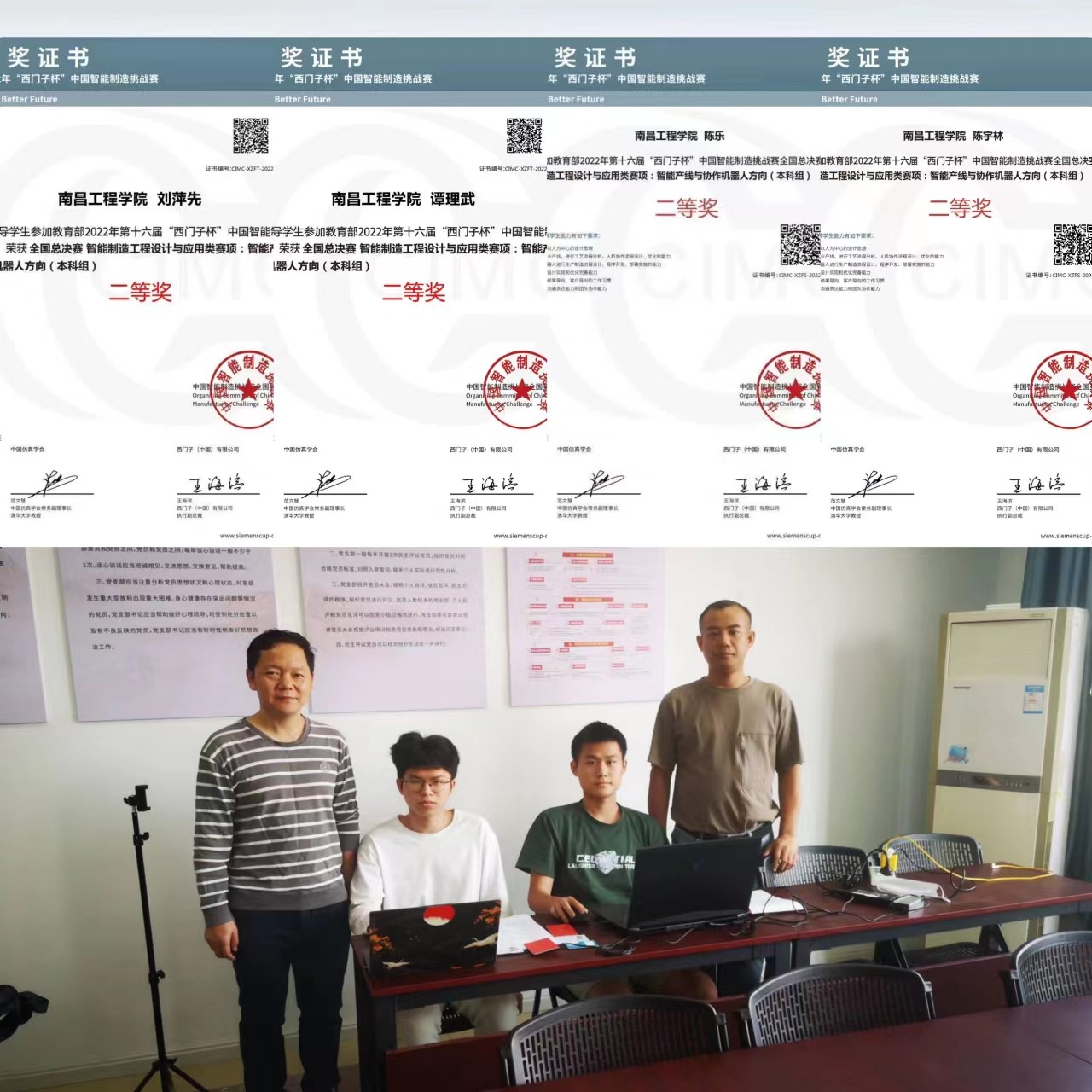 近日,教育部2022年第十六届“西门子杯”中国智能制造挑战赛全国总决赛落下帷幕。我校电气工程学院教师谭理武和机械工程学院教师刘萍先共同指导,2020级自动化专业陈宇林和2020级机械电子专业陈乐组成的代表队荣获“智能制造工程设计与应用类赛项:智能产线与协作机器人方向(本科组)”全国总决赛二等奖,取得了我校在该项赛事的突破,在我省高校同类专业中名列前茅。