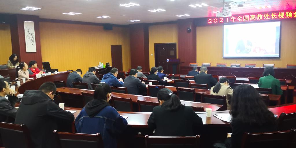 4月1日上午,2021年全国高教处长视频会召开,我校在大学生活动中B100会议室设立分会场。副校长汪胜前、教学专门委员会成员、发展规划处(高等教育发展中心)和各教学单位主要负责人及管理人员、教务处科级以上干部参加会议。