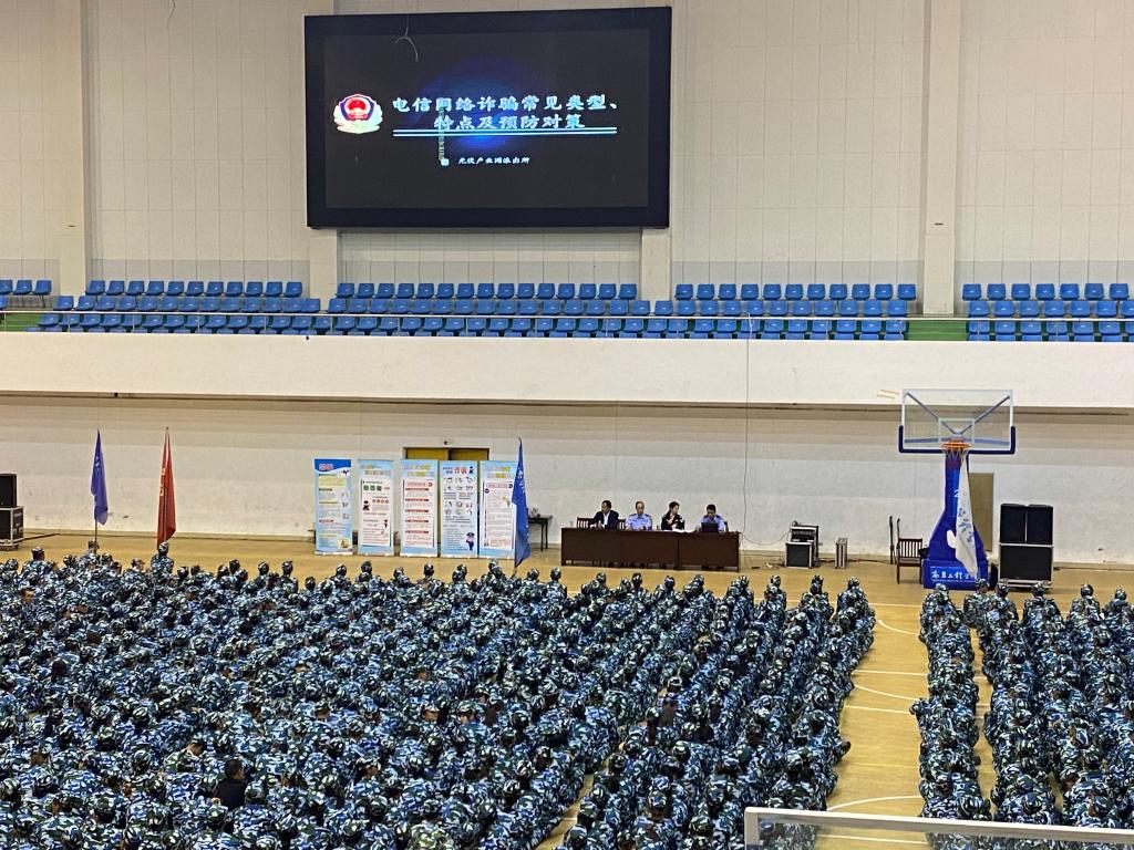 10月11日晚,校保卫处联合辖区光伏派出所在体育馆为2021级全体新生开展“青春无悔 无诈校园”反诈骗宣传教育活动,派出所所长王雪松、副所长陈斯及相关警官参加,活动由保卫处副处长李超琍主持,体育教学部和大学生教官队给予了保障支持。