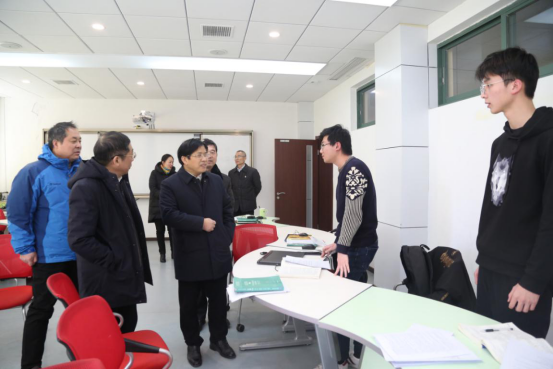 郭杰忠一行听取了我校瑶湖学院建设发展现状,查看硬件设施条件,询问教学运行情况,了解教师工作状况和学生学习成效,对学校探索开展卓越人才培养表示肯定。他寄语同学们要努力学习,珍惜韶华,为建设社会主义现代化强国打下坚实基础。(图/文 学生记者 叶城 何云芳)