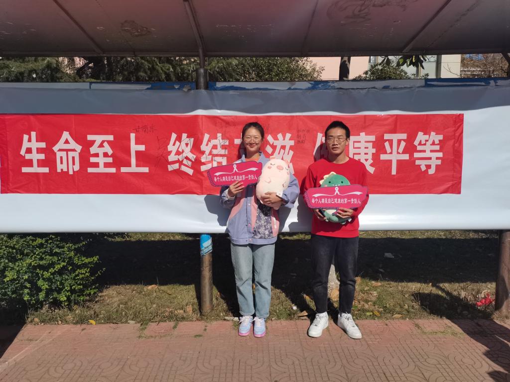 本次活动形式主要有讲解艾滋病知识、发放宣传单、有奖问答互动。师生们主动在条幅上签名,履行自己是自身健康第一责任人的承诺。