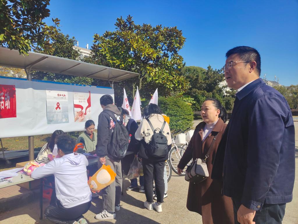 11月30日,校公共卫生与健康教育服务中心、校团委在润园广场联合开展第34个“世界艾滋病日”现场宣传活动,副校长陆伟锋到现场指导。