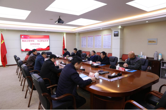 1月7日上午,九江职业大学党委书记熊颖一行来校考察交流,校党委书记金志农、校长汪胜前、副校长陆伟锋及相关职能部门负责人参加座谈会。