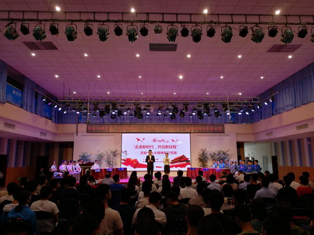 为引导广大师生深入学习党的十九大精神,以赛促学,以学促用,6月5日下午,由学生工作部主办、水利与生态工程学院承办的“走进新时代,开启新征程”党的十九大精神知识竞赛决赛在大学生活动中心多功能厅举行。校党委书记徐兰宾,纪委书记梁钢,组织部部长黄华,学生工作部部长胡盛华,各学院、研究生处党组织负责人,师生代表共计200余人参加活动。马克思主义学院许金华博士担任此次比赛的专家评委进行现场点评及知识讲解。