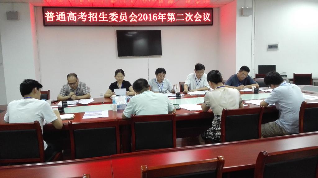 7月26日上午,我校2016年普通高考招生委员会第二次会议在大学生活动中心B300会议室召开,招委会主任、校长金志农,副主任、纪委书记梁钢,以及全体委员参加了会议。会议由招委会副主任、副校长胡敏主持。