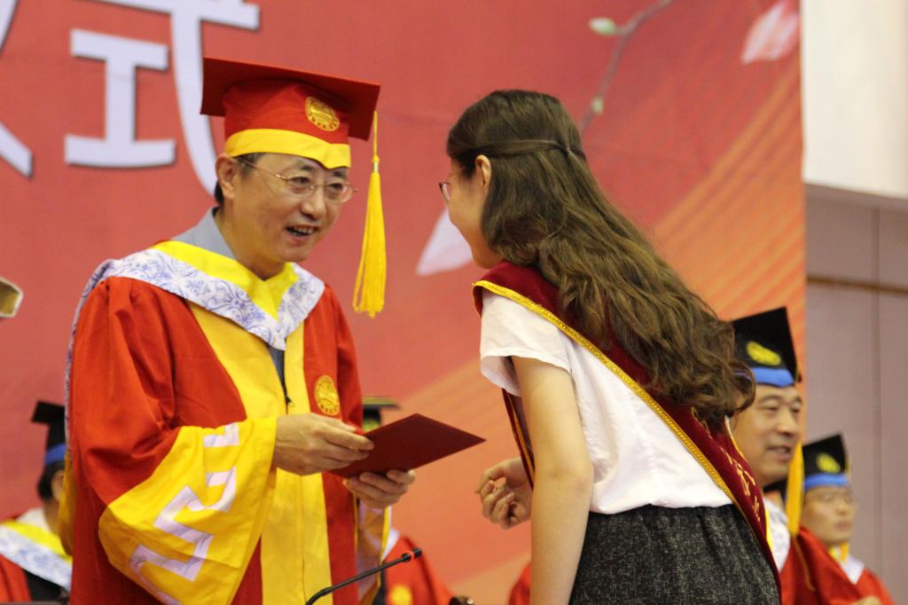 学位评定委员会副主席、副校长樊后保宣读了《关于授予普通高等教育刘林发等3305人学士学位、林曙光等255人辅修学士学位的决定》文件。伴随着音乐声,毕业生代表依次上台进行拨流苏受礼,并庄重接过毕业证书和学位证书。