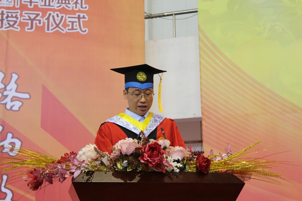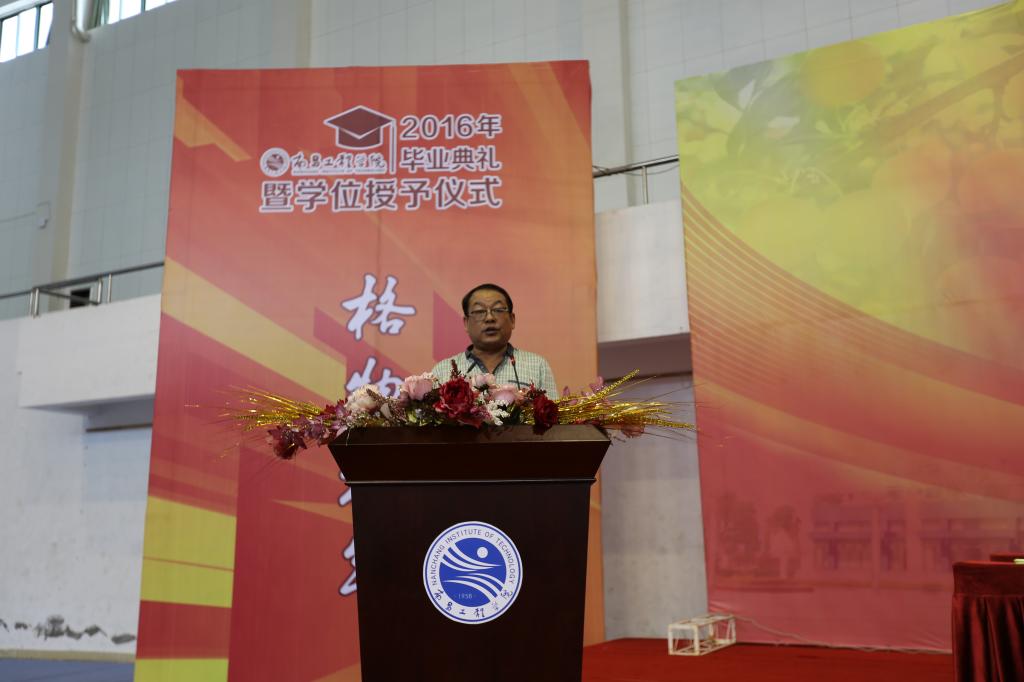 校党委书记刘谟炎以《崇德向上,走向辉煌》为题,代表学校致辞。他向圆满完成学业的毕业生们致以热烈的祝贺和美好的祝愿,对广大教职工和家长表示诚挚的谢意。在讲话中,他深情地寄语全体毕业:一是当好母校事业发展传帮手。恳请同学为学校发展建言献策,用自己实际行动争做南工亮丽的“新名片”、母校发展的改革设计师、母校发展的好帮手;二是当好社会主义合格建设者。把德才兼备作为基本要求、要有实事求是的求真精神、要有时代担当的使命感、要有高度负责的责任心、要有坚决果断的执行能力、要有讲规矩的习惯约束;三是当好党的事业可靠接班人。要有担当重任的胜任力、要有能上能下的沉浮力、要有严于律己的自制力、要有聚集人气的合作力、要有崇高境界的领导力、要有开拓进取的创造力。“及时当勉励,岁月不待人”,希望同学们珍惜生命中的每一天,脚踏实地,努力筑梦,力争成为大众仰慕、万众推崇的时代先锋!