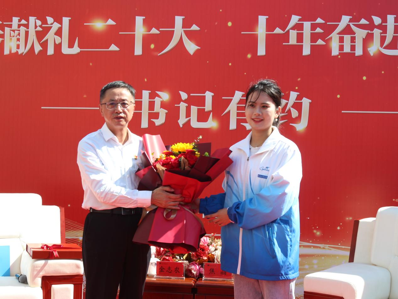 金志农指出,全校上下要做到习近平总书记指出的五个“牢牢把握”,以中国式现代化全面推进中华民族伟大复兴,全面把握、深刻领会党的二十大精神实质。他对“美丽中国”“生态”的本源、“生态化与生态化理论”“两山”理念进行了解读,讲解了党的十八大以来“生态文明”与“美丽中国”演生演化的历程,结合求学、教学、科研经历,分享了在南工工作近十年印象最深刻的南工故事。在谈到“墩墩苗”与“成长收获”时,他深情寄语在座师生,要不惧怕挫折、正确看待逆境,年轻时“墩苗”扎根时要不知“苦”,未来才能收获“福”,在苦与乐的转化中不断奋起、永不气馁;要立大志、善规划、勤学习、有格局,立志做有理想、敢担当、能吃苦、肯奋斗的新时代好青年,以奋进姿态为书写全面建设社会主义现代化江西的精彩篇章贡献南工力量。