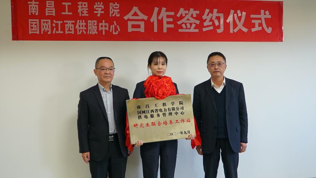 仪式上,金志农为我校所聘2名国网江西供服中心校外研究生导师颁发了聘书。贺丹君和刘强签署了共建研究生联合培养工作站协议。与会人员实地考察了国网江西供服中心大数据部和检验技术部,围绕研究生培养、科技成果转化、项目联合申报等方面进行了深入研讨。(文/赵岳娜 图/康兵 责任编辑 周冠佳 潘旭)
