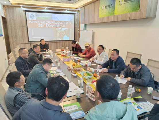 校党委书记金志农,校长汪胜前等一行赴高新区洽谈校地合作事宜。南昌市委常委、高新区党工委书记王万征主持召开校地合作座谈会。双方就深化校地联治联建机制、毕业生留昌就业、校企科研合作等方面进行深入交流探讨。