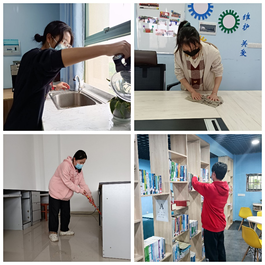 活动中,团学青年在13栋新时代文明实践中心开展“学习劳模精神,向劳动者致敬”专题学习会,畅谈学习“新时代劳模精神”的体会;志愿者们在校园各处开展“弘扬劳动精神,共建文明校园”劳动教育实践活动;各班级代表前往后勤保障处能源科开展“走进劳动者,致敬劳动者”现场学习活动,帮助打扫卫生;各寝室开展“干净卫生你我他,舒适寝室靠大家”宿舍大扫除,美化生活环境。