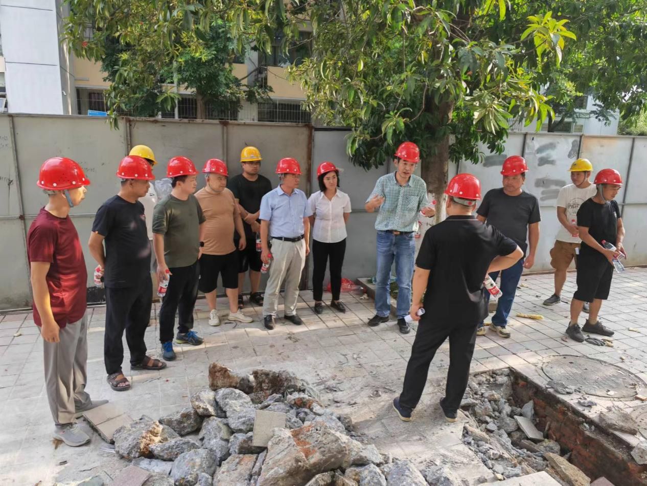 在相关项目建设现场,后勤保障处邀请校内5家施工企业负责人向优秀施工单位学习。李培生带领大家认真听取施工单位、后勤保障处等相关人员的工作汇报,详细询问工程进度、工期安排及亟须协调解决的问题,现场协调安排予以落实并提出要求。