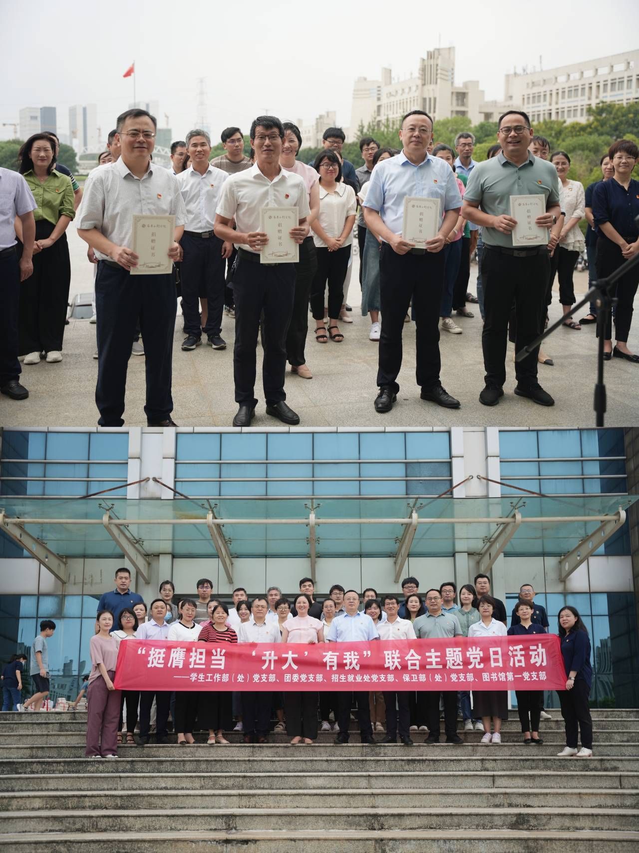 8月29日,学生工作部(处)党支部、团委党支部、招生就业处党支部、保卫部(处)党支部、图书馆第一党支部在图书馆开展联合主题党日活动,重温入党誓词,开展图书整理活动。校党委委员、副校长周敏丹参加。
