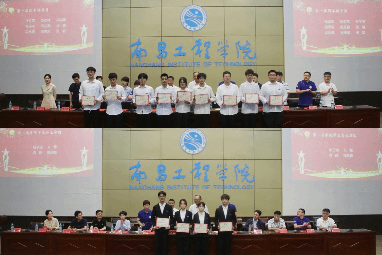典礼现场,到场领导和嘉宾为60名2023年企业奖学金获奖学子颁奖,为第一届朋辈辅导员和机械工程学院2023届主席团成员颁发聘书。