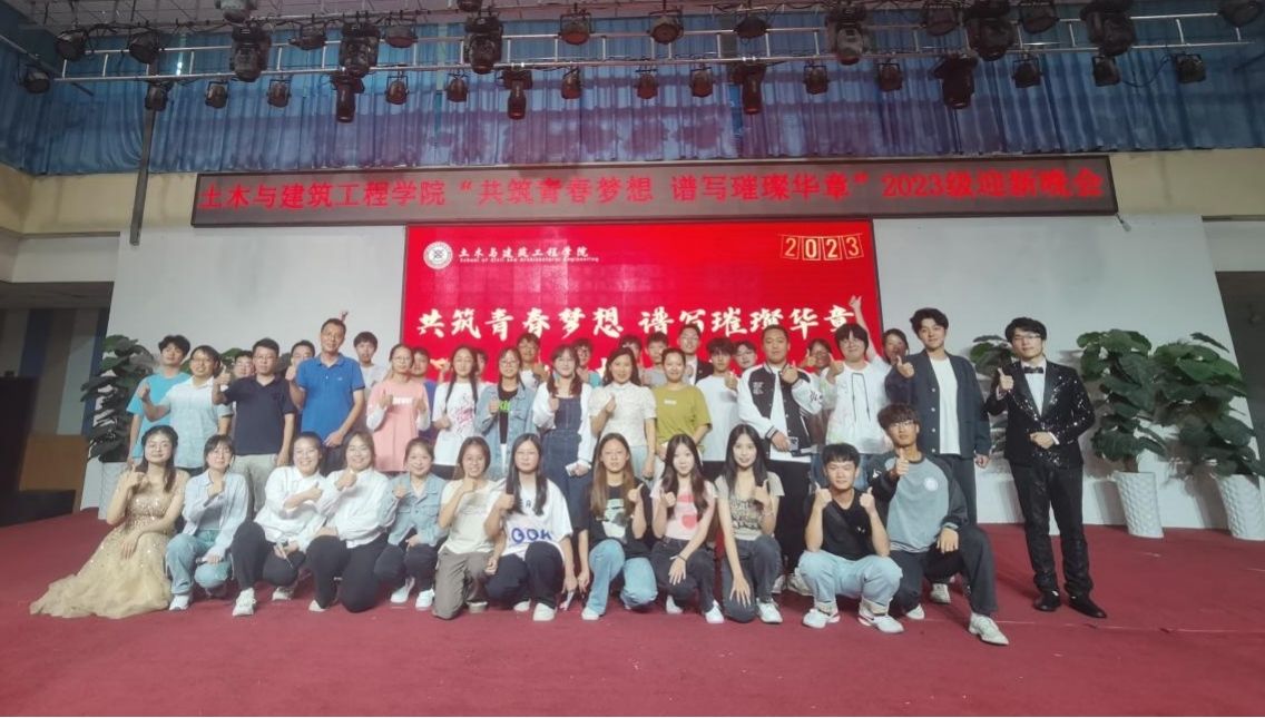 9月25日晚,土木与建筑工程学院“共筑青春梦想,谱写璀璨华章”2023级迎新晚会在新时代文明实践中心(大学生活动中心)多功能厅成功举办。土木与建筑工程学院相关负责同志、全体辅导员以及2023级新生等300余人参加活动。
