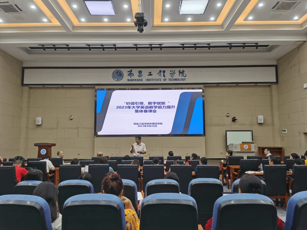 9月26日,外国语学院在北C105召开了以“价值引领,数字赋能”为主题的2023年大学英语教学能力提升集体备课会,副校长李培生出席,教育教学评估中心、教师发展与服务中心负责人和外国语学院全体教师参加。