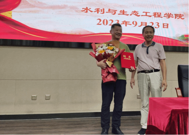 活动中,学院为严文武颁发了水利与生态工程学院智慧水利专业建设指导委员会主任委员聘书。