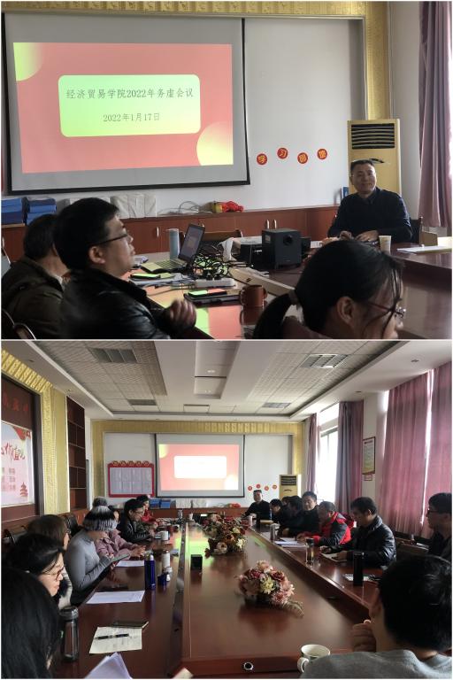 1月17日,经济贸易学院在明理楼A410召开2022年工作务虚会,学院党政领导班子、各教研室主任、专业负责人及博士教师代表参加会议。