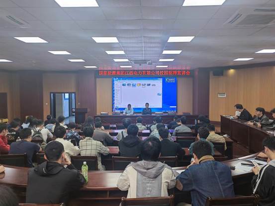 宣讲会上,招聘人员详细介绍了国家能源集团江西电力有限公司的相关情况及招聘计划,活动现场气氛热烈。(文/图 涂怀谋 责任编辑 潘旭 罗婷)