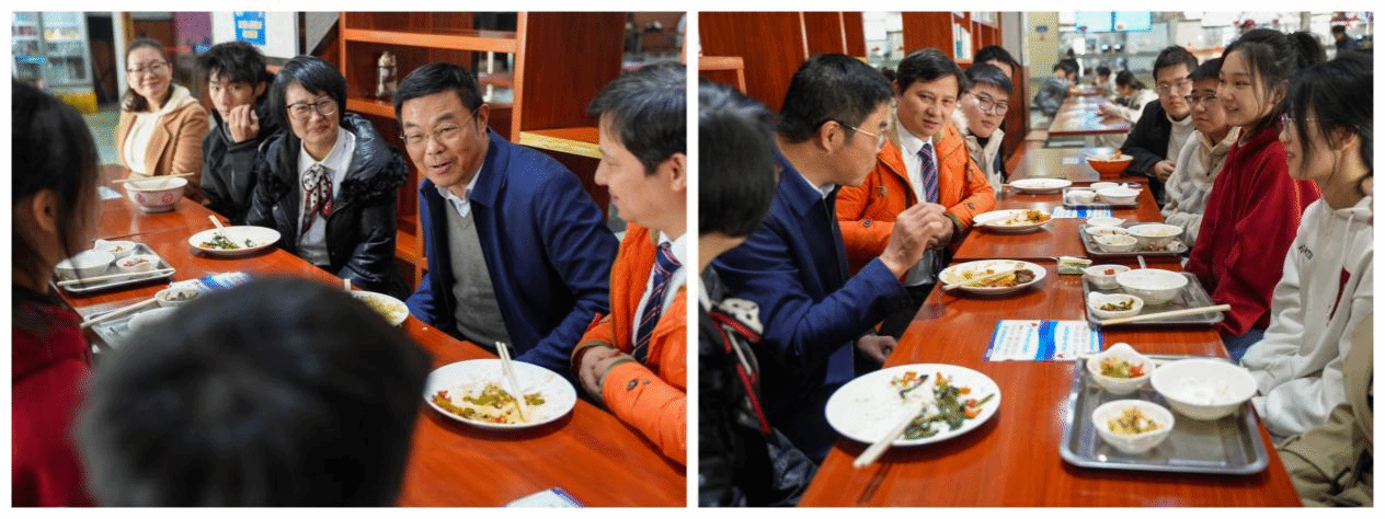 12月29日中午,陆伟锋与联系班级2023级电子信息工程01班的同学们在润园共进午餐,面对面交流,倾听同学们对食堂菜品、食堂卫生和服务等方面情况的意见和建议,关心同学们的学习与生活等情况,鼓励同学们多读书、勤思考,要珍惜时光,把握青春,努力成才。