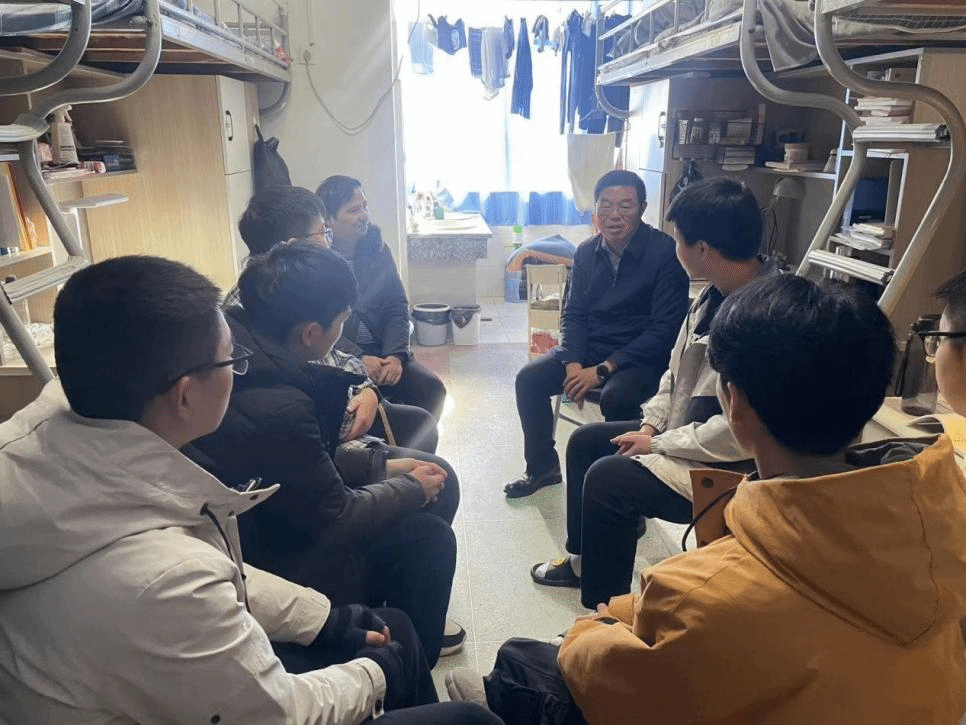 1月4日中午,陆伟锋在学生社区7栋B525宿舍与同学们交流,详细了解同学们在学习、生活和工作等方面存在的问题,给予耐心的指导和建议,勉励同学们珍惜大学时光,认真做好大学生涯规划,把个人梦想融入到国家发展、民族复兴的伟大征程中,把自己铸造成为一个对社会有贡献的人。(文/田晨 图/张荣 田晨 责任编辑 潘旭 罗婷)