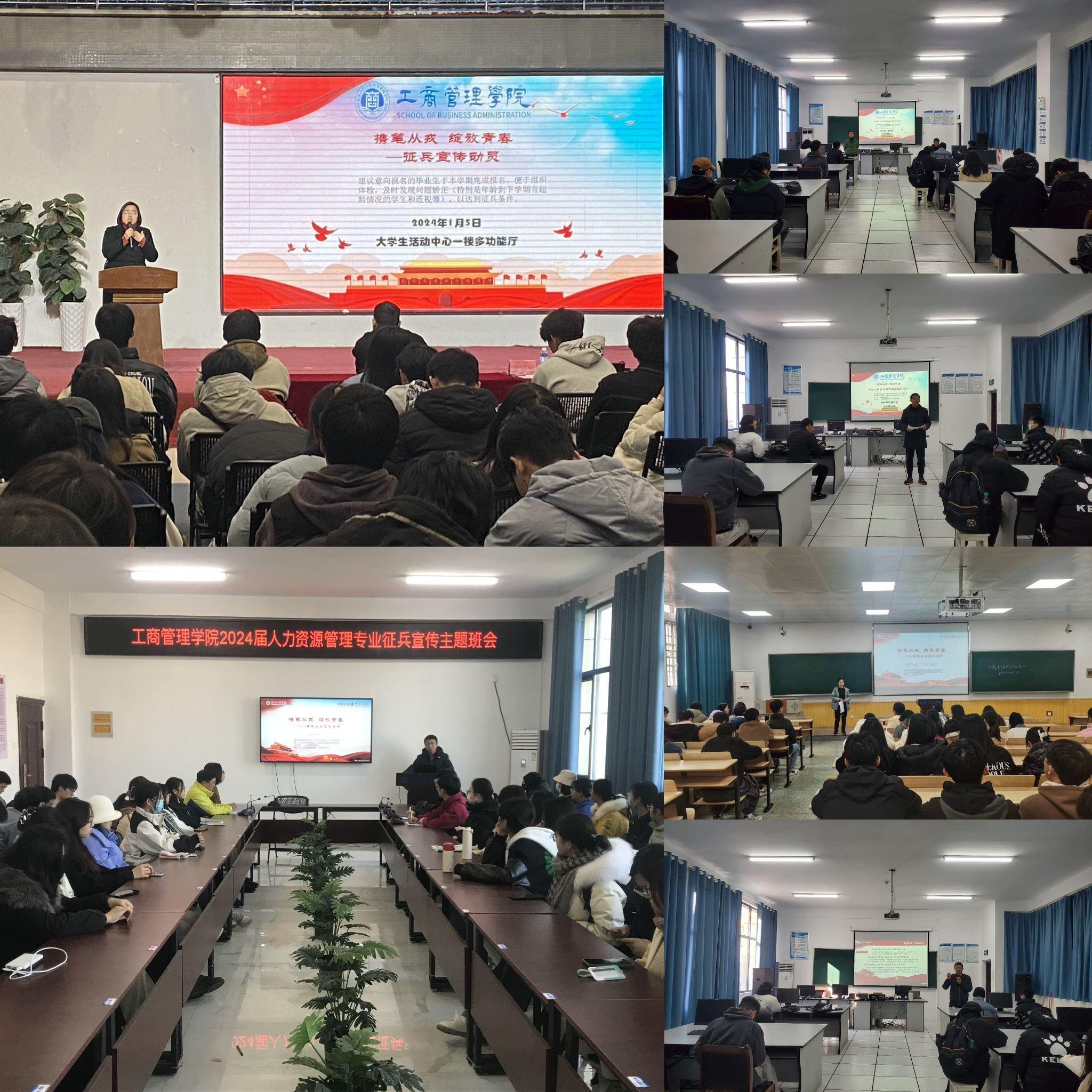 近日,工商管理学院组织召开“大学生征兵宣传”主题班会,鼓励大学生积极参与应征入伍,推进国防和军队现代化建设与发展。学院党政领导、各毕业班班主任、专业负责人、辅导员以及全体2024届毕业生参加。