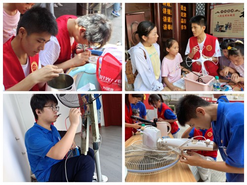 7月9日,信息工程学院“勇担青春使命、播种科技梦想”暑期社会实践团在南昌新建县长堎镇文教路社区党群同心苑广场开展“我为群众办实事之电子医生进社区”家电维修实践活动。