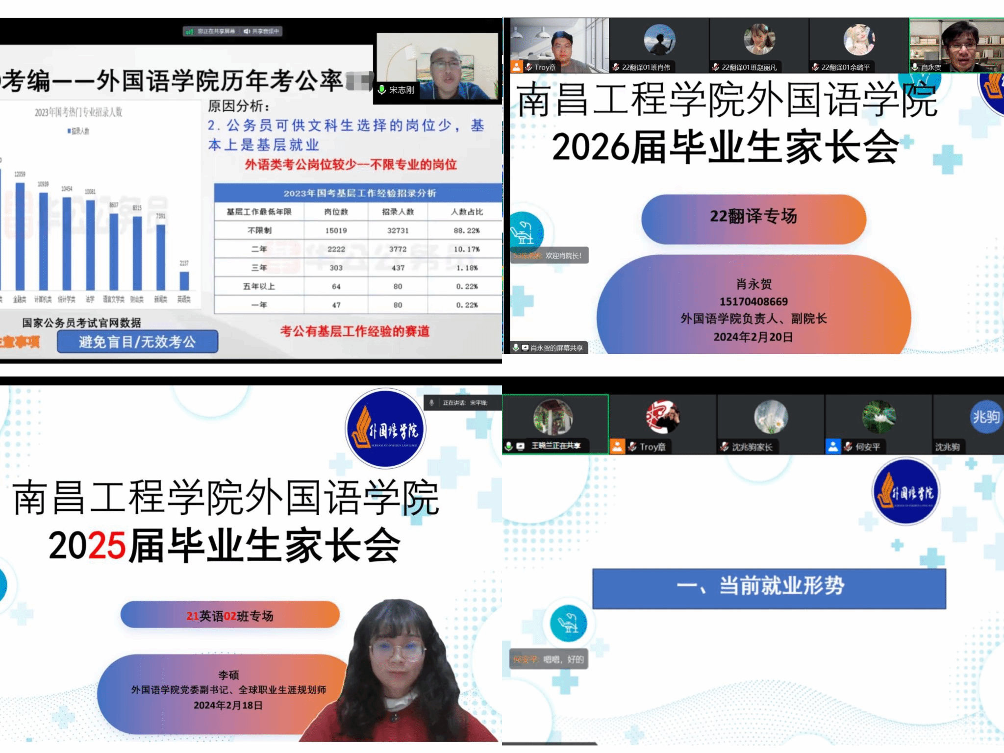 近日,外国语学院召开2021级和2022级学生线上家长会,持续推动家校共同育人工作,精准帮助学生做好专业学习和职业规划。外国语学院班子成员、专业负责人、班主任及2021级和2022级全体学生和家长参加。