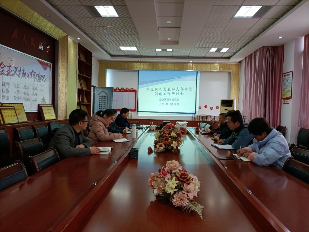 12月17日下午,经济贸易学院党委在北教学楼A410会议室举行支部特色创建工作和2021年学生党员发展工作研讨会,学院党委委员和学生党支部书记参加研讨。
