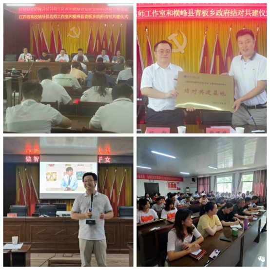 青板乡党委书记陶万峰对实践团一行表示欢迎和支持,希望通过此次共建活动优化整合双方资源,共同推动重难点问题的解决,把党的政治优势转化为双方服务经济社会发展、服务广大人民群众的实际行动。江西省高校辅导员名师工作室主持人杨铖对青板乡给予大力支持表示感谢,他介绍了此次活动的目的、意义与结对共建仪式的具体事项。江西省高校辅导员名师工作室骨干成员、我校学工处心理咨询中心教师武厚博士作了题为《做智慧父母 育优秀子女》的讲座。大学生暑期三下乡社会实践团成员代表交流了活动感想。