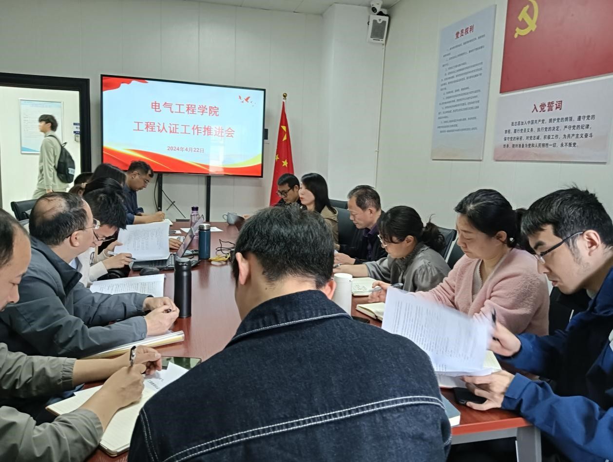4月22日上午,电气工程学院召开电气工程及其自动化专业工程教育认证工作推进会。副校长张兴旺出席,电气工程学院党政负责人、领导班子及各参与工程认证的骨干人员参加。