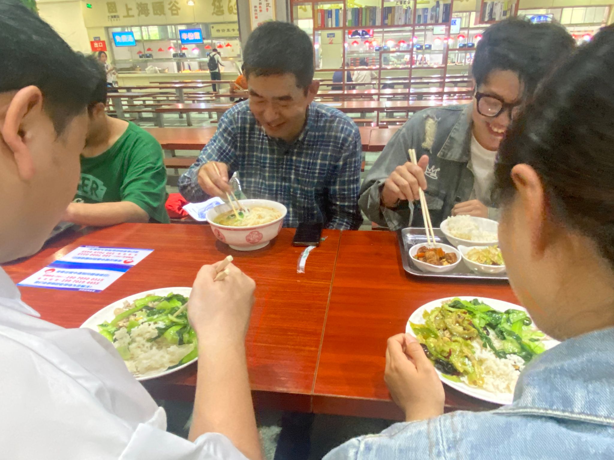 李培生来到学生公寓3栋走访看望学生,了解学生思想、学习、生活情况,与师生代表在食堂开展帮厨活动并共进晚餐、亲切交流。(文/赖卓 图/肖芬 责任编辑 潘旭 罗婷)