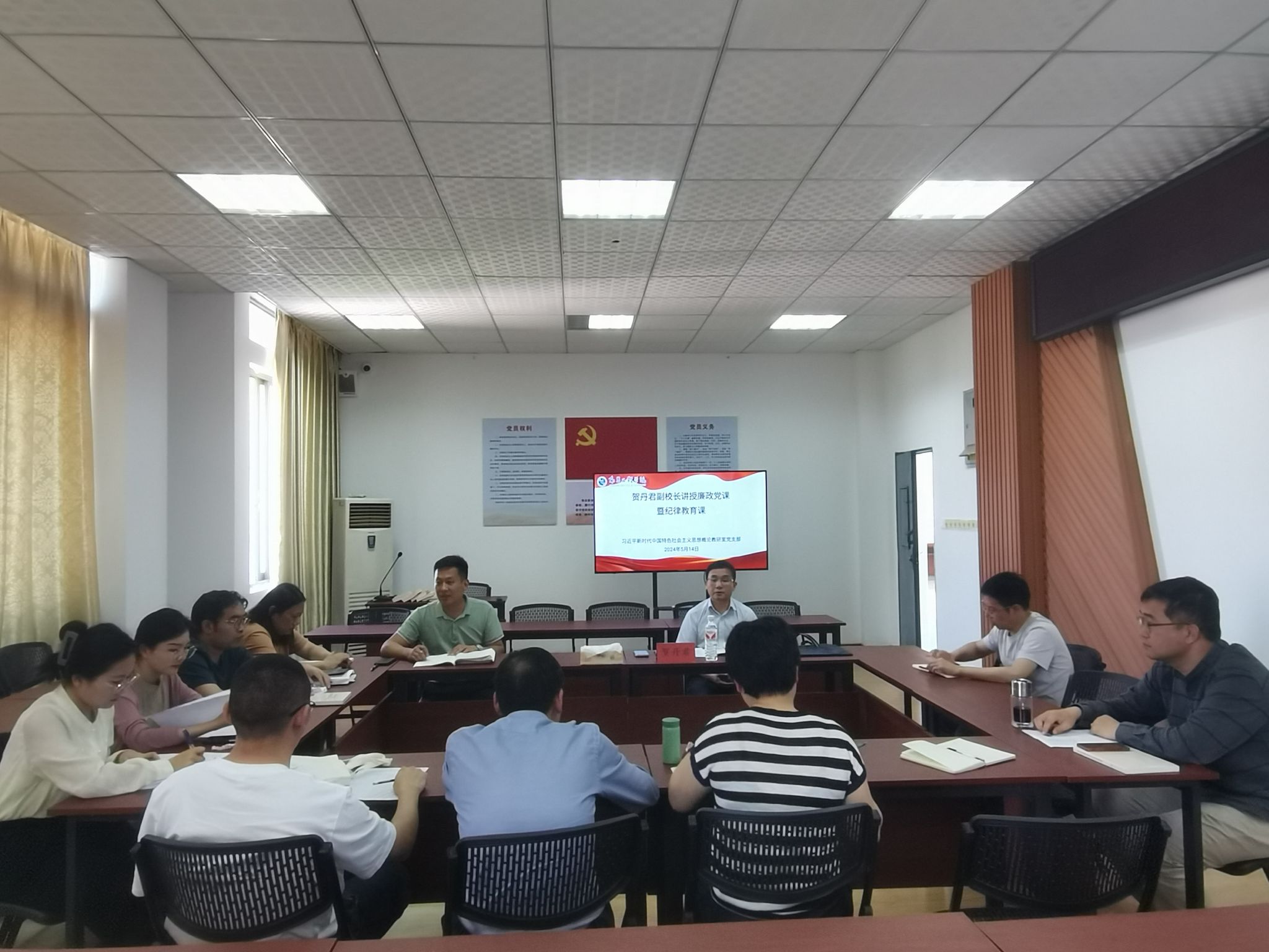 5月14日,校党委委员、副校长贺丹君在马克思主义学院习近平新时代中国特色社会主义思想概论教研室党支部讲授党纪学习教育专题党课,马克思主义学院党总支全体委员、习近平新时代中国特色社会主义思想概论教研室党支部全体党员参加。