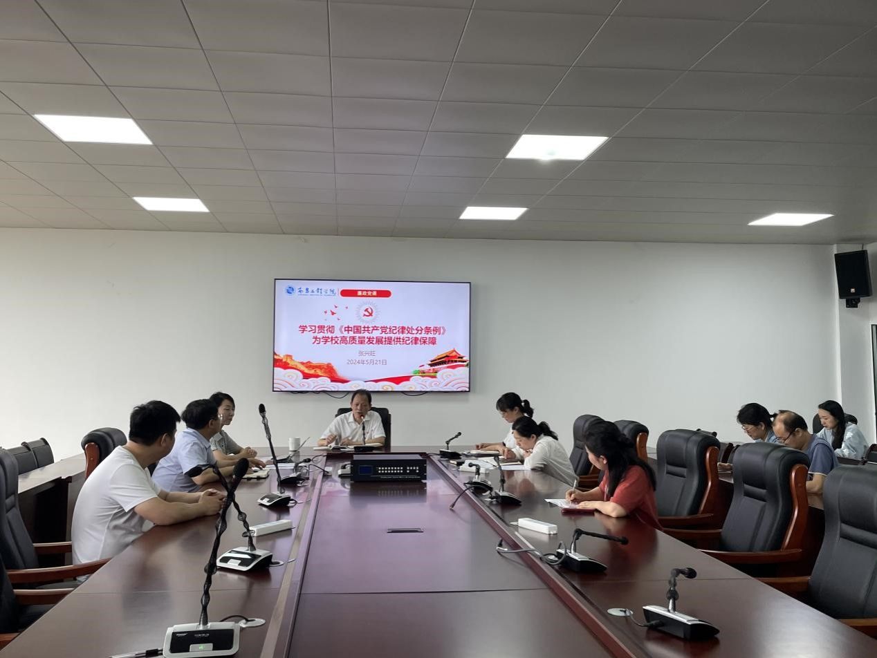 张兴旺从开展党纪学习教育的重要意义、新修订的《中国共产党纪律处分条例》的主要内容以及认真学习贯彻《条例》三个方面深刻阐述《条例》的丰富内涵,分享自身学习党纪的所感所悟。他指出,开展党纪学习教育,是贯彻落实以习近平同志为核心的党中央重大部署的必然要求,是巩固拓展主题教育成果、践行习近平总书记关于党的自我革命重要思想的有力抓手,全体党员要把开展党纪学习教育作为重要政治任务,进一步深刻领悟“两个确立”、坚决做到“两个维护”。要自觉将《条例》要求内化于心、外化于行,推动全面从严治党向纵深发展。党员干部应当严格遵守“六项纪律”规定要求,学纪、知纪、明纪、守纪,切实履职尽责,主动担当作为,为学校高质量发展作贡献。