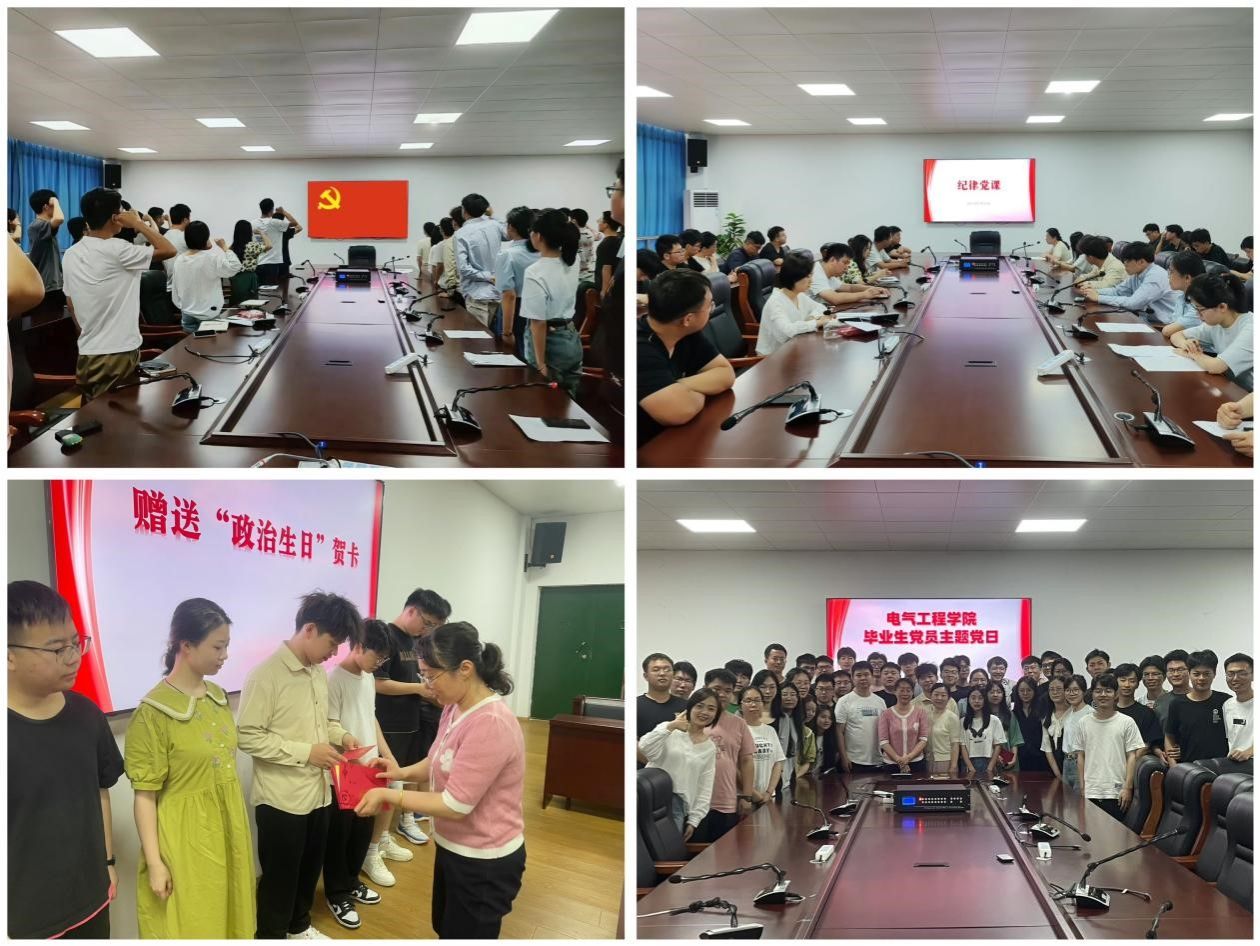 5月24日,电气工程学院在毕业生党员中开展“牢记政治生日,践行党的宗旨”主题党日活动,深入推进党纪学习教育,进一步强化毕业生党员身份意识、廉洁意识和服务意识,引导党员践行初心使命,严守党规党纪。学院党委负责人、各学生党支部书记参加。
