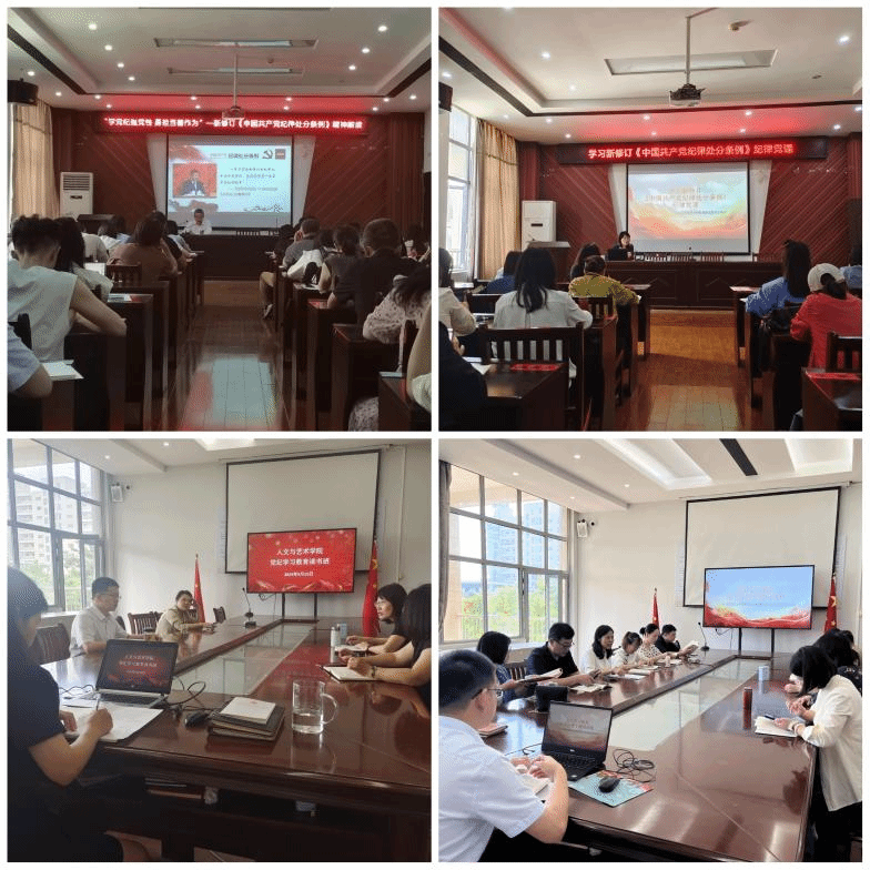 自党纪学习教育开展以来,人文与艺术学院深入学习贯彻党中央、省委关于开展党纪学习教育的决策部署,认真落实学校党委工作要求,坚决扛起政治责任,迅速响应行动,认真研究谋划,精心组织实施,围绕“四个坚持”推进党纪学习教育走深走实。