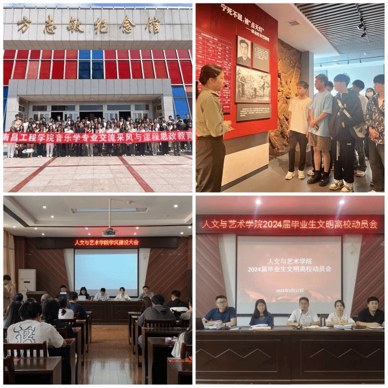 坚持融入日常工作,在学用结合上下功夫。学院将党纪学习教育融入学院教学、学风建设、学生管理等日常工作中,注重学用结合、抓在经常。音乐学专业师生在弋阳艺术采风期间专程到方志敏纪念馆参观学习;学院先后召开学风建设和毕业生文明离校动员会,要求全体党员、入党积极分子以党纪学习教育为契机,发挥先锋模范作用,带动全院学生遵规守纪、营造优良学风、争做文明大学生。学院还积极丰富课程思政内容,将党规党纪学习融入教学科研、学科竞赛和就业指导等过程,教育引导学生对纪律规矩心存敬畏之心,增强遵规守纪意识。
