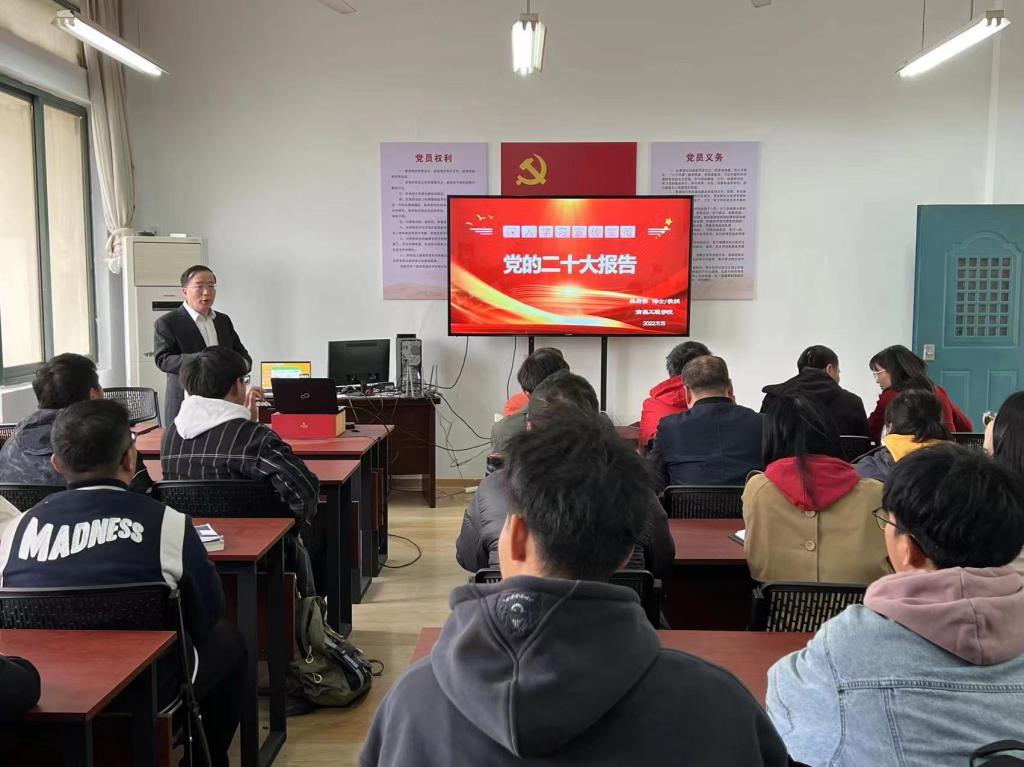 11月15日下午,校党委委员、副校长樊后保在明理楼A201党员活动室作“学习贯彻党的二十大精神”主题宣讲报告,所联系班级学生及国际教育学院教师到场聆听。