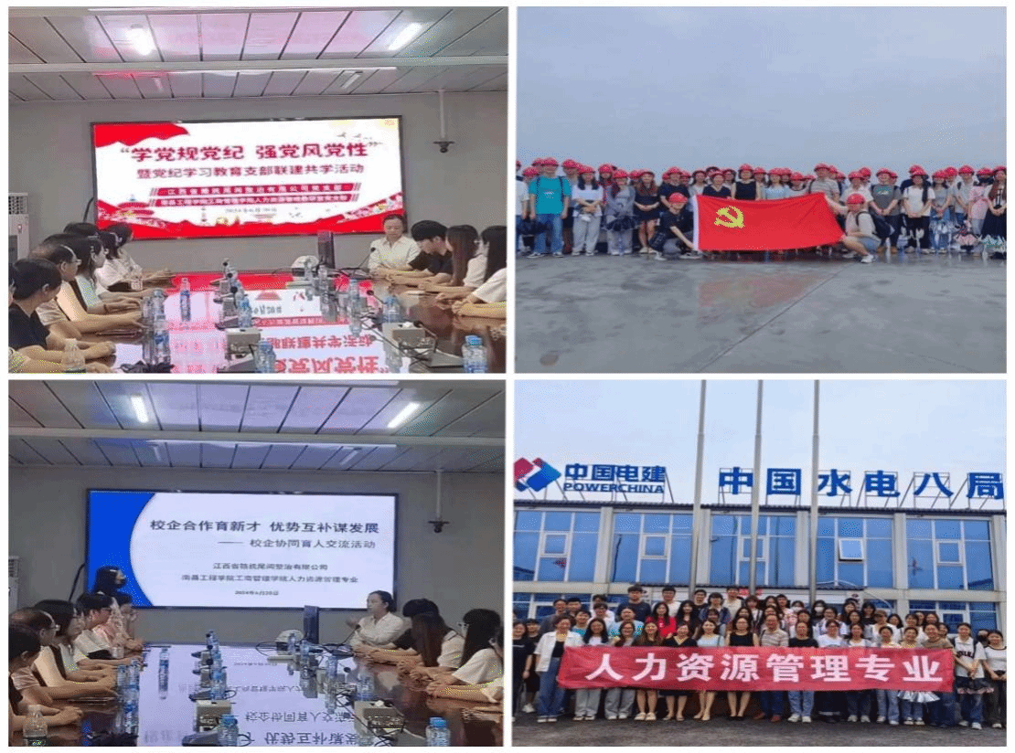 在中国水利水电集团第八工程局赣抚尾闾项目部,大家集中观看了党纪学习教育专题片,结合工作日常和在校学习生活实际交流学习心得体会。大家参观了泄水闸、船闸施工现场等地,学习赣抚尾闾工程的项目实施背景、建设内容、建设效益及目前施工进展情况等。双方围绕打造校企合作协同育人平台进行座谈,聚焦构建“党建引领+专业发展+人才培养+产教融合”为一体的创新人才培养模式深入交流,并针对党建引领下的人力资源管理专业课程设计、教学团队培养、实训实习平台建设等内容进行探讨。双方一致认为,高校与企业之间紧密合作有利于发挥各自优势,实现资源互补,通过党建共建、人才联培、项目协同攻关等合作方式,全面推动行业进步和人才培养。