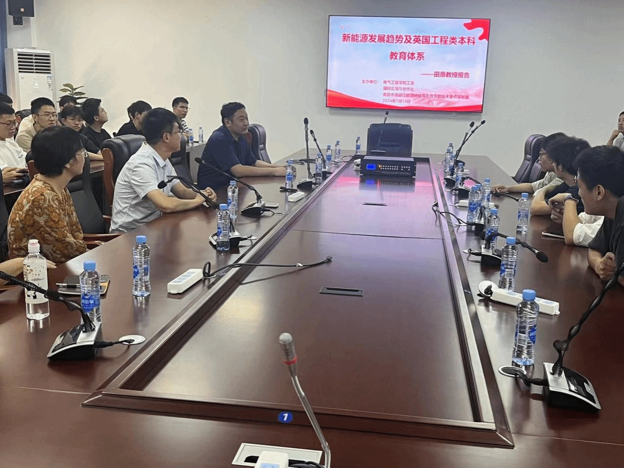 7月14日上午,国际交流与合作处、电气工程学院工会以及南昌市低品位能源转化与系统节能技术重点实验室开展“新能源发展趋势及英国工程类本科教育体系”专题讲座,英国德蒙福特大学田原教授主讲,副校长李培生、电气工程学院工会部分教师代表及相关专业学生代表参加。