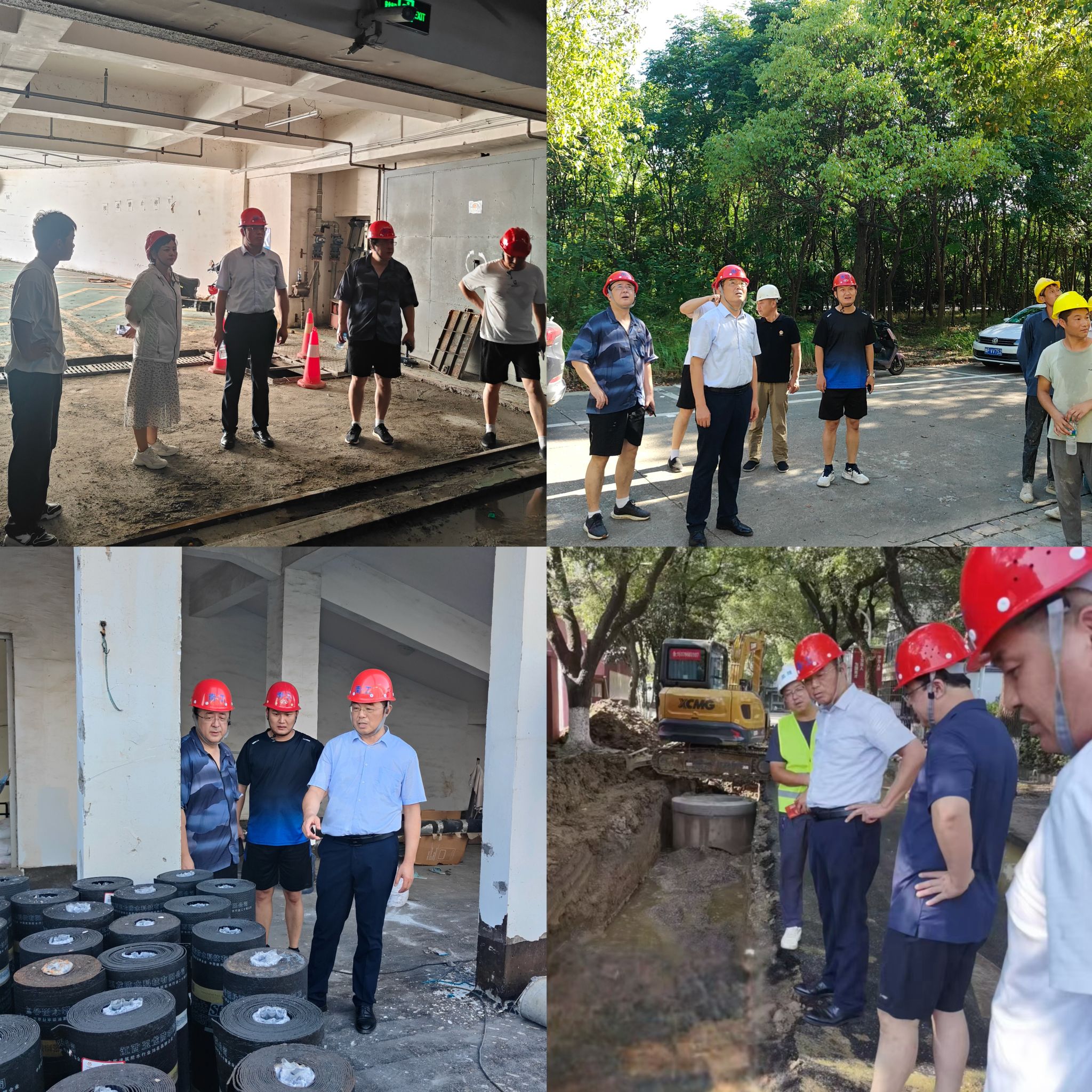 近日,副校长陆伟锋带领基建处人员察看学校暑期在建工程项目,先后来到彭桥校区雨污分流改造工程、公租房地下车库维修工程、体育馆外墙维修工程、学生公寓屋面维修工程、土木与建筑工程学院实验室维修工程项目施工现场,详细了解工程进度、质量和安全管理等情况。