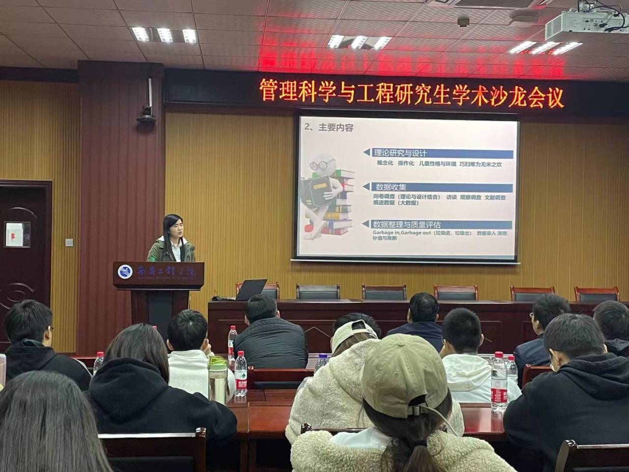本次沙龙的主题为水安全及社会调查,2019级和2020级管理科学与工程专业研究生代表分享了自己在社会调查和科研方面的经验与困惑,三位老师针对汇报作了点评与指导。