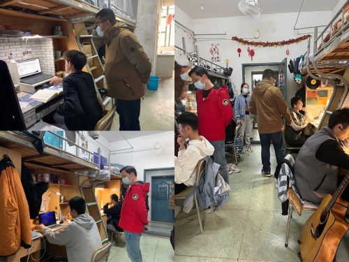 3月18日下午,信息工程学院相关负责人、教务工作和学生工作人员来到学生社区,了解学生网课学习情况及近期思想动态,对有课程安排的同学在宿舍上网课情况进行检查督导,与同学们就保证学习质量作交流指导。