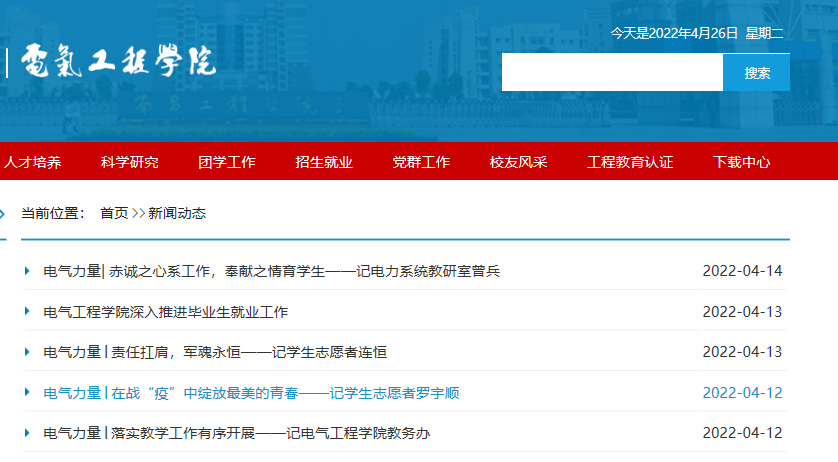 德育凝聚青春力量。4月12日以来,学院在网站上开辟“电气力量”专栏,挖掘身边师生在疫情防控一线、居家办公学习期间的感人事迹和先进典型。同时,学院以线上方式开展了“凝聚青春力量,弘扬抗疫精神”宣讲会和富有思政元素的主题班会,大力弘扬抗疫精神,把全校师生在抗疫斗争中展现的担当精神转化为全体同学团结奋斗、砥砺前行的强大力量。