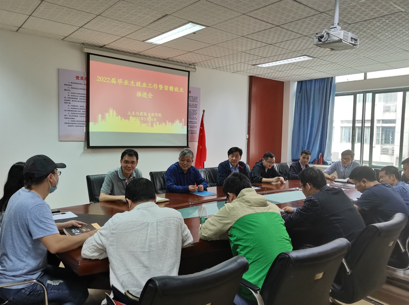 5月26日,土木与建筑工程学院召开党政联席会扩大会议,专题研究2022届毕业生就业暨留赣就业工作,学院党政领导、副科级以上干部、专业负责人、毕业班班主任、就业辅导员参加会议。