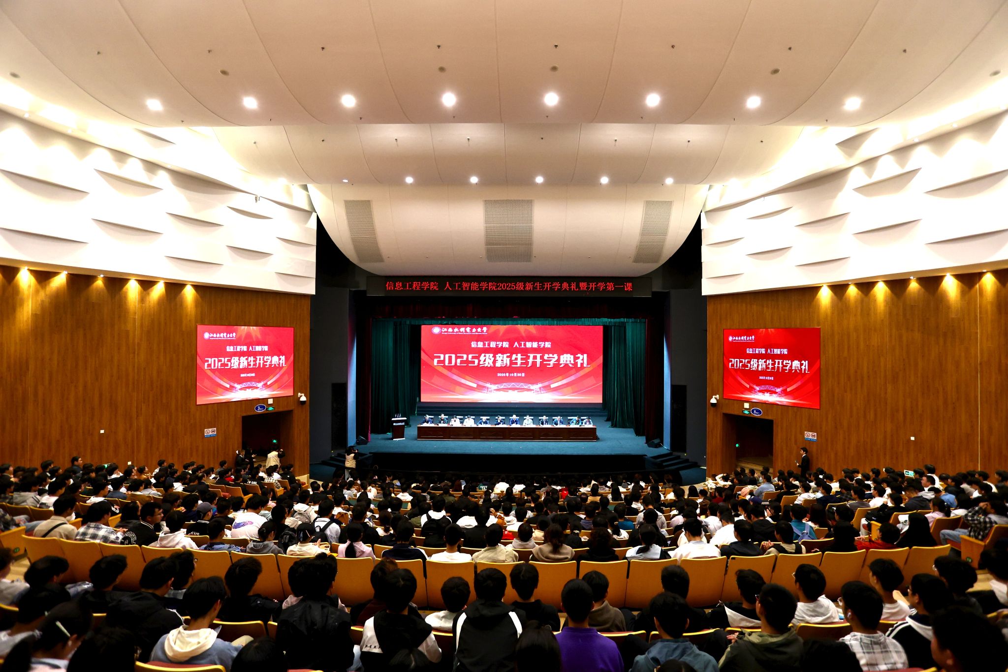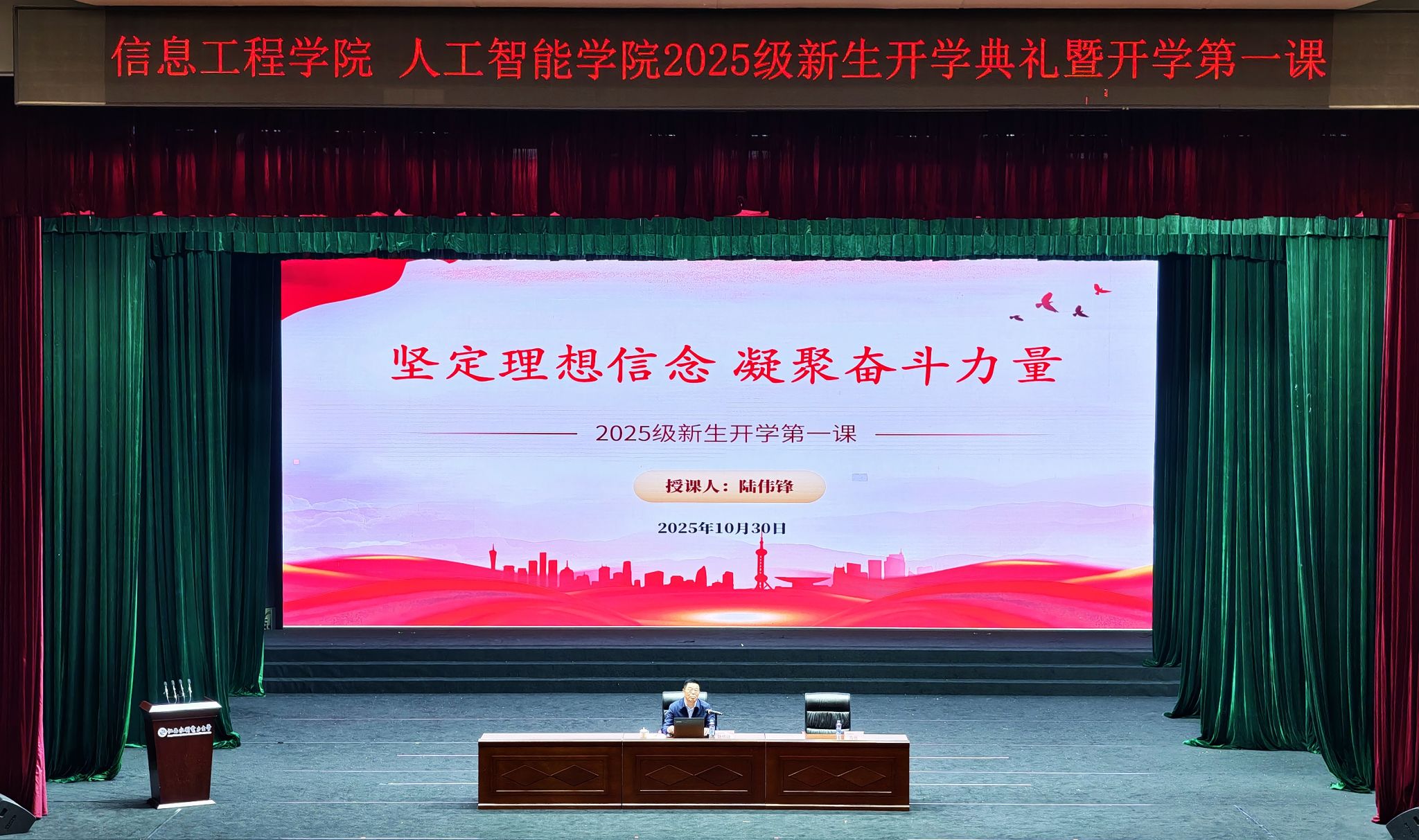 10月30日,信息工程学院暨人工智能学院2025级新生开学典礼在瑶湖艺术中心举行。校党委书记汪胜前出席并讲话,副校长陆伟锋致辞并讲授开学第一课。学工处负责人、信息工程学院党政班子成员、师生代表和2025级全体新生参加。华为技术有限公司江西代表处Marketing与解决方案销售部部长李永波作专题报告。信息工程学院校友、2004级计算机科学与技术专业吴英春(福克斯复合材料(常州)有限公司总经理),2004级计算机软件技术专业彭勇俊(深圳赤子网络科技有限公司总经理)到会颁发校友奖学金。